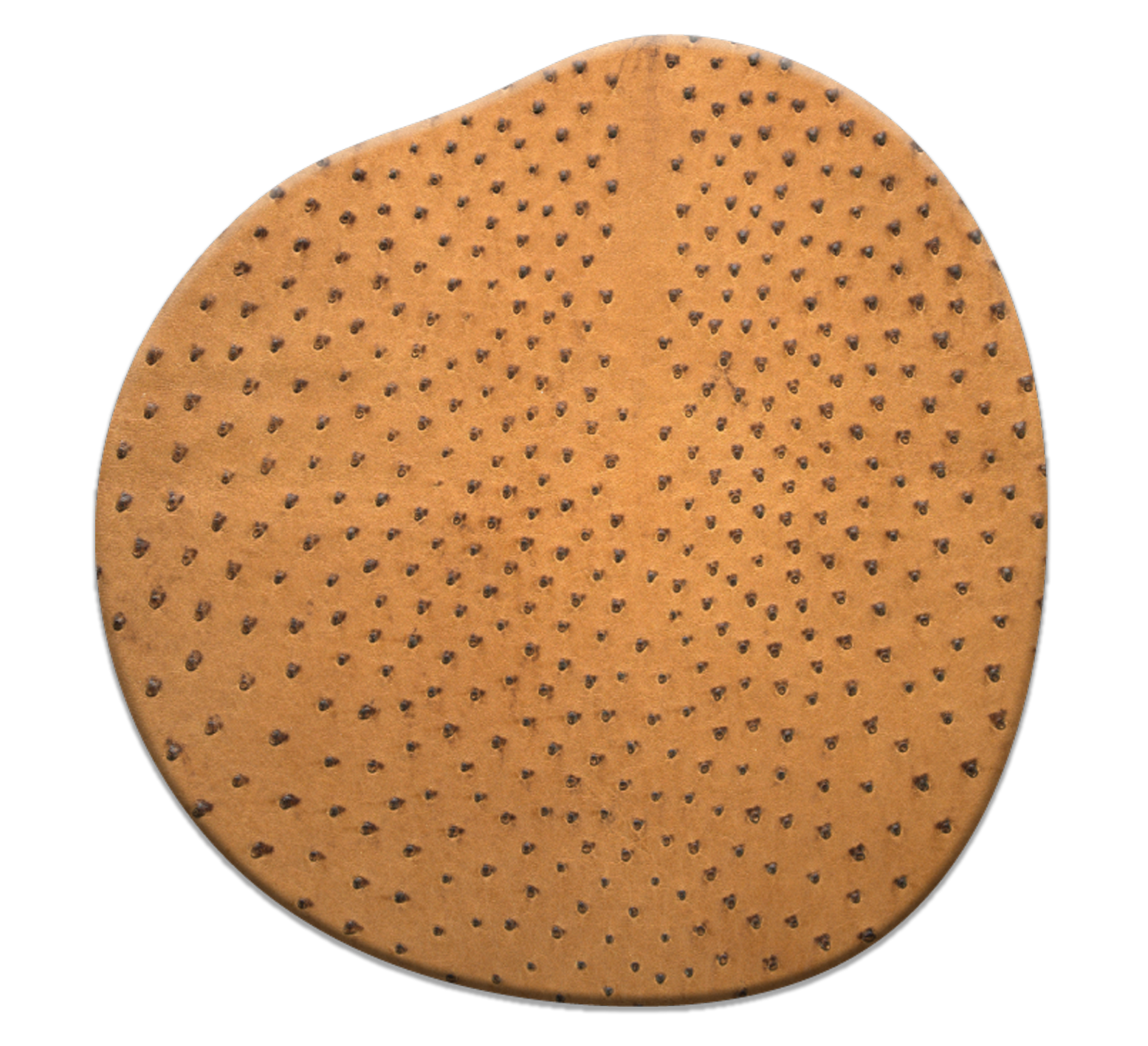 Our luxury ostrich leather, sourced from Africa, features the prized diamond cut of the hide, offering unique raised quill textures and a subtle feel. Farm-raised and completely consumed in ethical ways, this exquisite material is available in multiple brilliant colors. Ostrich leather wears like iron, making it a durable and long-lasting choice. It adds a touch of sophistication and elegance to any design, perfect for creating timeless pieces.