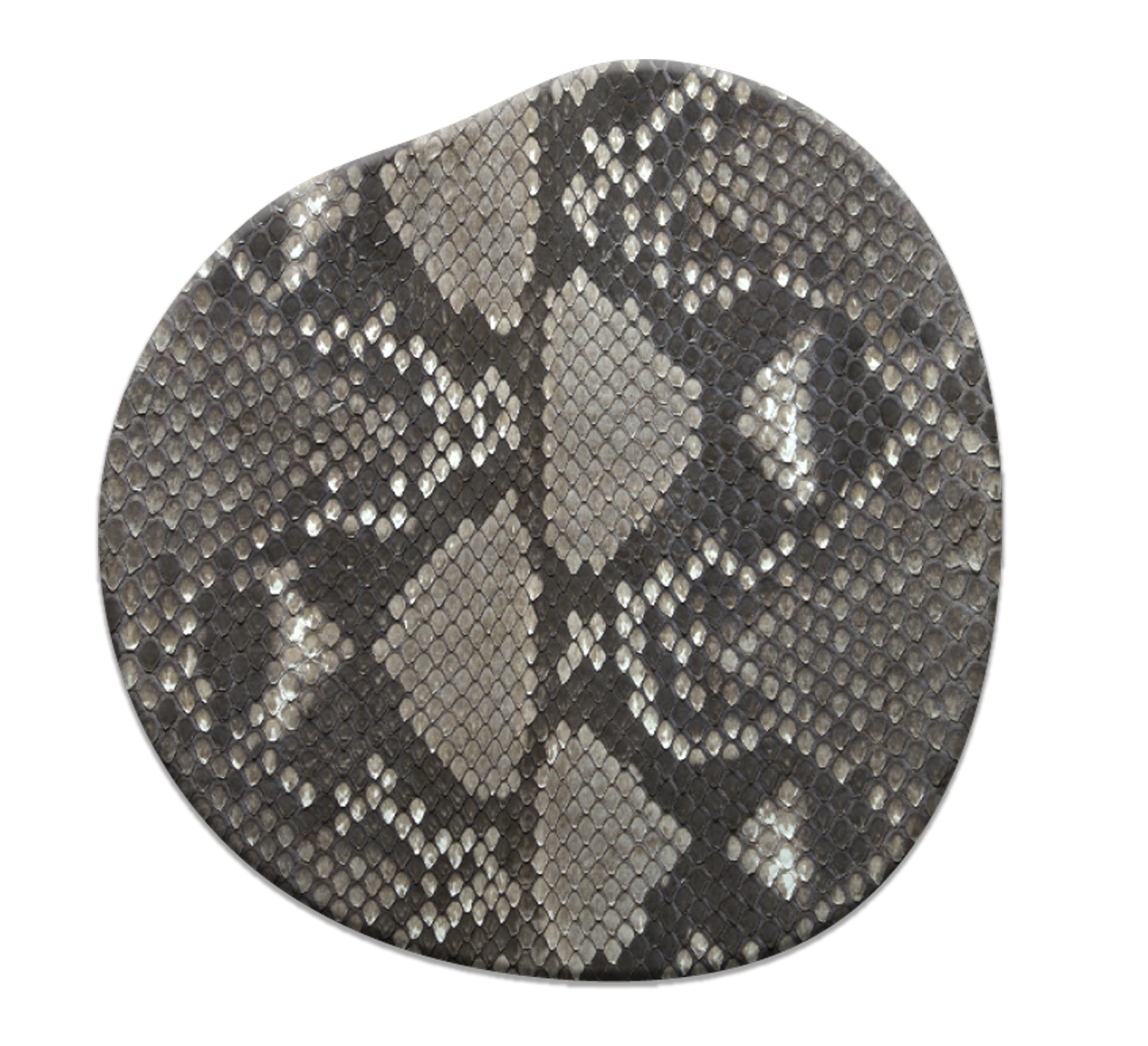 Our Indonesian python leather is nature's masterpiece, featuring soft scales and brilliant patterns that create a captivating visual narrative. Each individual scale beckons with allure, offering a texture that's both genuine and inspiring to touch. Harvested from overpopulated habitats, this process helps protect natural environments from destruction. This exquisite material adds a touch of exotic elegance to any design while supporting ecological balance and sustainability.