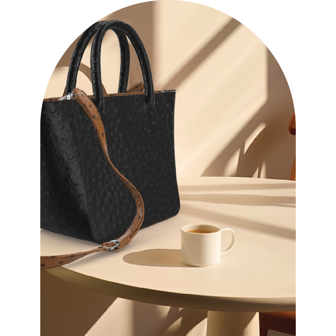 Luxury Two Tone Ostrich Handbag With Modern Style